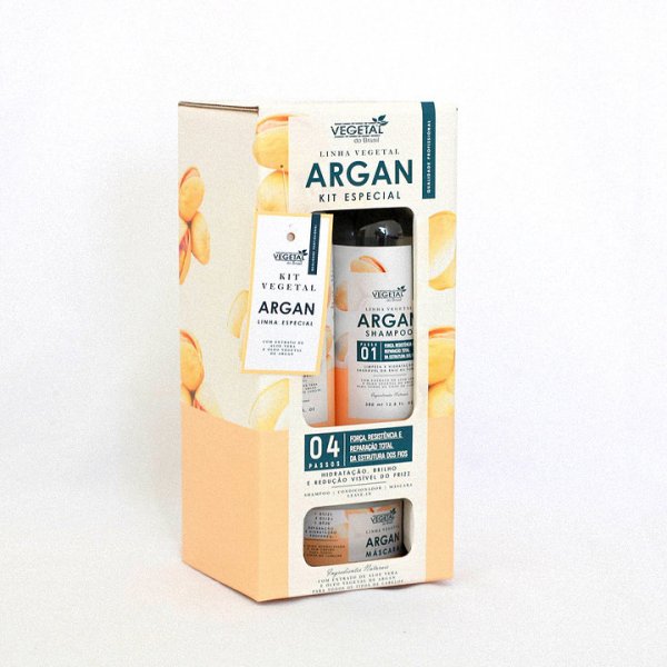 A formulação do kit de argan contém o poderoso óleo de argan, que penetra na fibra capilar, desembaraça e condiciona os fios enquanto proporciona reparação e hidratação incomparáveis. Também é enriquecido com óleo de algodão, extrato de babosa e d-pantenol, que e reparam os danos, devolvendo a sedosidade aos cabelos sem deixa-los pesados.